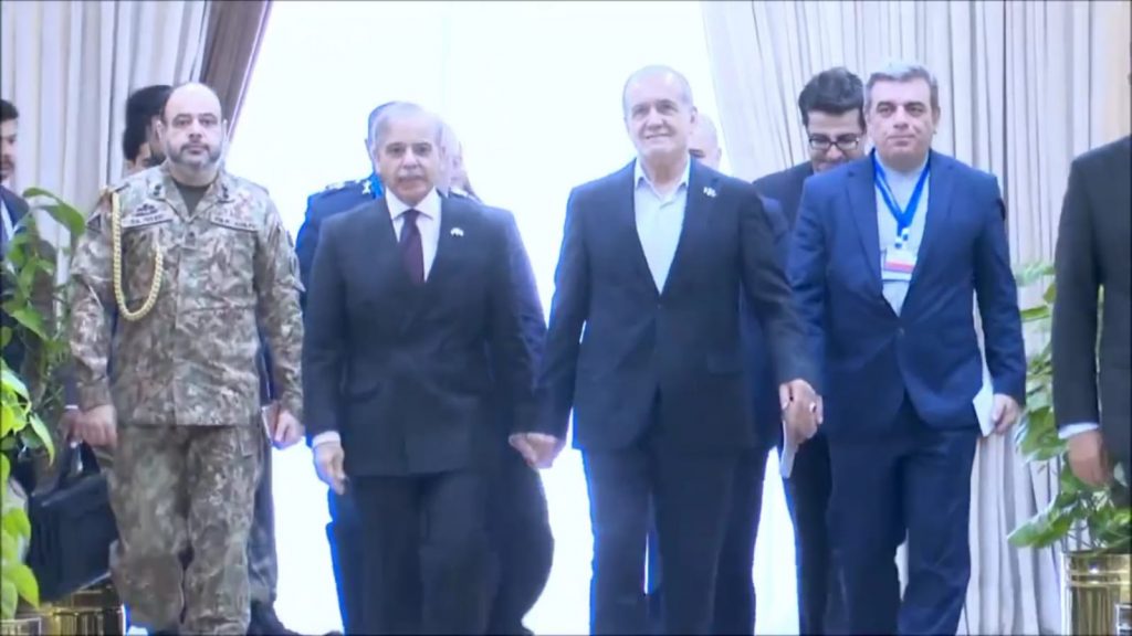 ایرانی صدر ڈاکٹر مسعود پیزشکیان نے اپنے سرکاری دورے کے دوران اسلام آباد میں وزیر اعظم شہباز شریف سے ملاقات کی۔ دونوں رہنماؤں نے دوطرفہ تجارت کو 10 بلین ڈالر تک بڑھانے، دفاع، ثقافت اور رابطے میں تعاون بڑھانے کے عزم کا اعادہ کیا۔ انہوں نے اسرائیلی جارحیت کی مذمت کی، متعدد معاہدوں کا تبادلہ کیا اور علاقائی امن اور استحکام کے لیے مشترکہ کوششوں پر زور دیا۔