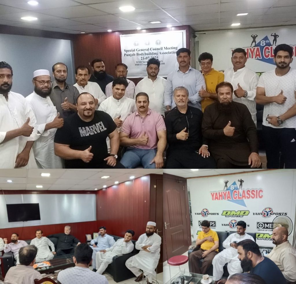 یہ اہم اجلاس پیر 21 جولائی کو لاہور میں پنجاب باڈی بلڈنگ ایسوسی ایشن کے یحییٰ سپورٹس آفس میں منعقد ہوا۔ جس میں تمام ڈویژنز کے سینئر عہدیداران، صدور اور سیکرٹریز، ممبران اور جنرل کونسل نے شرکت کی۔