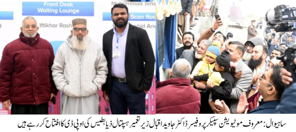 فنڈ ریزنگ کی تقریب میں مخیر حضرات کے علاوہ مقامی و بیرونِ ملک مقیم پاکستانیوں نے بھی آن لائن فنڈز جمع کروائے۔ ساہیوال میں زیرِ تعمیر دی ڈائیابیٹیز سنٹر (ذیابیطس ہسپتال) کی او پی ڈی کا افتتاح اور فنڈ ریزنگ تقریب کا انعقادکیا گیا۔تقریب میں مخیر حضرات نے بڑھ چڑھ کر حصہ لیا جبکہ مقامی افراد کے ساتھ ساتھ بیرونِ ملک مقیم پاکستانیوں نے بھی آن لائن فنڈز جمع کروائے۔ ہسپتال کی تکمیل کے بعد ساہیوال اور گرد و نواح کے عوام کو شوگر اور اس سے متعلقہ تمام بیماریوں کے علاج کی عالمی معیار کی سہولیات فراہم کی جائیں گی۔ تقریب کے مہمانِ خصوصی معروف موٹیویشنل اسپیکر پروفیسر ڈاکٹر جاوید اقبال تھے جبکہ مہمان مقرر اداکار و سماجی شخصیت سرمد کھوسٹ تھے، جنہوں نے اس فلاحی منصوبے کی اہمیت پر روشنی ڈالی۔تقریب میں چوہدری جاوید رشید، پرنسپل گورنمنٹ کالج پروفیسر ممتاز، صدر چیمبر آف کامرس شیخ عظمت سلیم، سابق صدر چیمبر آف کامرس کاشف ریاض، پراجیکٹ ڈائریکٹر محمد احمد سمیت سماجی ، سیاسی شخصیات اور شہریوں کی بڑی تعداد نے شرکت کی۔ اس موقع پر شعبہ صحت سے تعلق رکھنے والے معروف ڈاکٹرز بھی شریک ہوئے جن میں ساہیوال ٹیچنگ ہسپتال کے میڈیکل سپرنٹنڈنٹ ڈاکٹر محمد خالد خان، اینڈوکرائنولوجسٹ ڈاکٹر اسجد حمید، ٹائپ سپیشلسٹ ڈاکٹر نزہت حمید، کارڈیالوجسٹ ڈاکٹر احسن نثار، نیفرولوجسٹ ڈاکٹر اسرار خان اور ڈاکٹر احمد خان شامل تھے۔ شرکاء نے ذیابیطس ہسپتال کے قیام کو ساہیوال کے لیے ایک اہم اور قابلِ تحسین فلاحی منصوبہ قرار دیتے ہوئے اس کی جلد تکمیل کے لیے تعاون جاری رکھنے کے عزم کا اظہار کیا۔ تقریب کے بعد شہریوں کا مفت معائنہ بھی کیا گیا۔