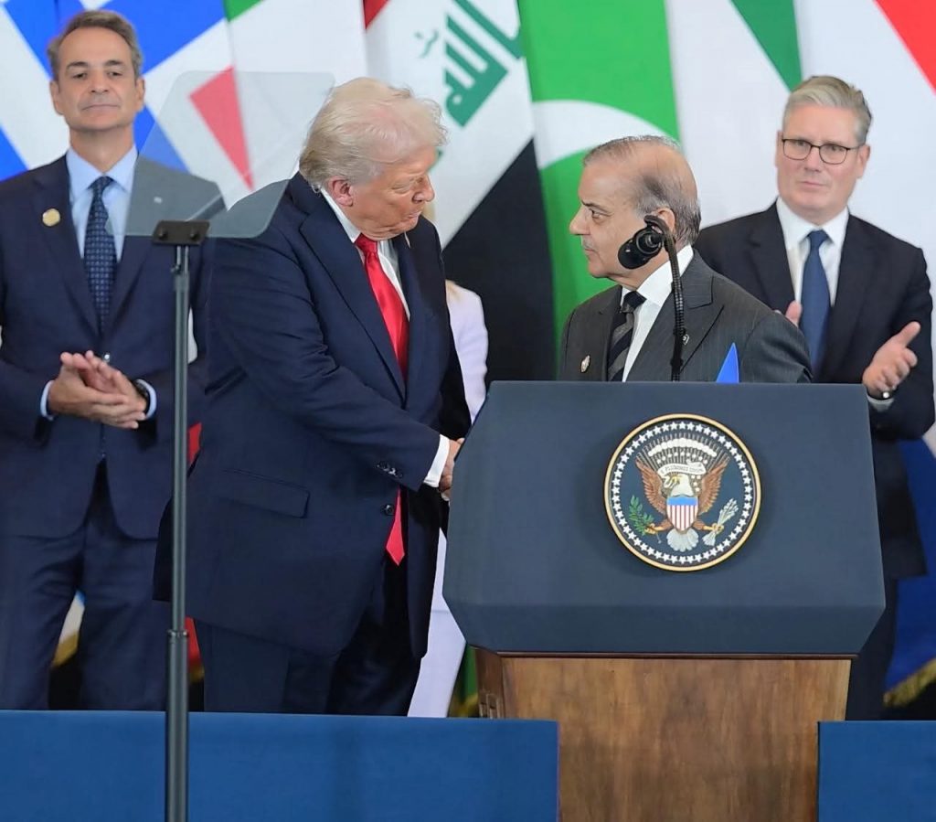 وزیراعظم محمد شہباز شریف اور امریکی صدر ڈونلڈ ٹرمپ نے 13 اکتوبر 2025 کو شرم الشیخ سربراہی اجلاس برائے امن میں مشترکہ طور پر پریس سے خطاب کیا۔ دونوں رہنماؤں نے غزہ امن معاہدے کی کامیابی پر روشنی ڈالی اور مشرق وسطیٰ میں دیرپا استحکام اور تعاون کے لیے اپنے عزم کا اعادہ کیا۔