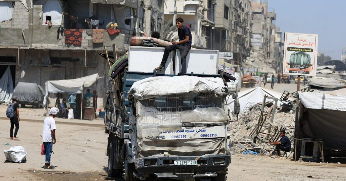فلسطینی وسطی غزہ میں ایک ساحلی سڑک کے ساتھ ساتھ گاڑیوں پر سامان لے کر جنوب کی طرف بڑھے، جب اسرائیل نے غزہ شہر میں اپنی کارروائی پر زور دیا اور اسے حماس کا آخری گڑھ قرار دیا۔