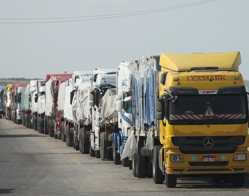 امدادی ٹرک جنگ بندی معاہدے کے تحت غزہ کی طرف بڑھ رہے ہیں۔