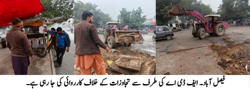 تفصیلات کے مطابق ڈائریکٹر جنرل ایف ڈی اے نے عوامی شکایات کا نوٹس لیتے ہوئے گلستان کالونی اکبر آباد چوک سے تمام تجاوزات فوری طور پر ختم کرنے کے احکامات جاری کیے۔ ان ہدایات پر ڈائریکٹر اسٹیٹ مینجمنٹ جنید حسن منج کی زیر نگرانی اسٹیٹ آفیسر انیب اسلم رندھاوا، انسپکٹر ثناء اللہ اور دیگر عملے پر مشتمل ایف ڈی اے کی اینٹی انکروچمنٹ ٹیم نے کارروائی کی۔ آپریشن کے دوران پکے تھڑے، کاؤنٹرز اور دیگر ناجائز تعمیرات مسمار کی گئیں جبکہ برگر، شوارما، بار بی کیو اور دیگر خوردنی اشیاء کے اسٹالز ہٹا کر عوامی راستوں کو مکمل طور پر صاف کر دیا گیا۔