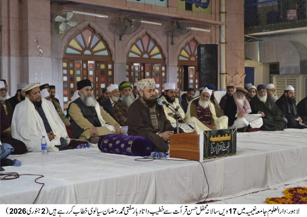 نعیمیہ صوت القراء پاکستان کے زیراہمتام دارالعلوم جامعہ نعیمیہ لاہور میں ”17ویں محفل حسن قرأت“’ کا شاندار انعقاد کیا گیا، جس میں ملک بھر مصر،تنزانیہ قراء حضرات سمیت پاکستان کے نامور قاری حضرات اپنی خوبصورت آواز میں قرآن کریم کی تلاوت کی۔ تقریب میں قراء کرام، طلباء، اساتذہ کرام اور عوام الناس کی بڑی تعداد نے شرکت کی۔مختلف قاری حضرات نے اپنی زبردست آواز میں سورۃ الفاتحہ، سورۃ البقرہ، اور دیگر منتخب سورۃ کی تلاوت کی۔ حاضرین پر قرآن کی تلاوت کا گہرا اثر ہوا اور محفل میں ایک روحانی فضا قائم ہو گئی۔خطیب داتادربار مفتی محمدرمضان سیالوی نے شرکاء سے خطاب کرتے ہوئے کہاکہ جامعہ نعیمیہ کے اس عظیم پروگرام نے ایک مرتبہ پھر اس بات کو ثابت کیا کہ قرآن مجید کی تلاوت اور اس کی تعلیمات پر عمل پیرا ہونا معاشرتی بہتری اور فرد کی روحانیت کے لیے نہایت ضروری ہے۔قرآن مجید سے تعلق مضبوط کرنا ہماری انفرادی اور اجتماعی نجات کی ضمانت ہے۔ نوجوان نسل کو حسنِ قرأت، حفظ اور فہمِ قرآن کی طرف راغب کرنا وقت کی اہم ضرورت ہے۔آن مجید صرف تلاوت کے لیے نہیں، بلکہ اس کی تعلیمات پر عمل کرنا ہماری زندگیوں کا مقصد ہونا چاہیے۔خطیب داتادربار مفتی محمدرمضان سیالوی نے اپنے خطاب میں قرآن کی تلاوت کی اہمیت پر زور دیا اور طلباء کو قرآن مجید کی تلاوت کے ساتھ اس کی تفہیم پر بھی توجہ دینے کی ترغیب دی۔تقریب کے اختتام پرملک وقوم کی سلامتی کیلئے خصوصی دعاکی گئی۔