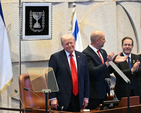 صدر ڈونلڈ ٹرمپ نے اسرائیلی پارلیمنٹ کا دورہ کیا اور وزیر اعظم بنجمن نیتن یاہو سے ملاقات کی جب حماس نے زندہ بچ جانے والے تمام 20 یرغمالیوں کو اسرائیل کے حوالے کیا تھا۔ ملاقات میں غزہ جنگ بندی کو محفوظ بنانے اور خطے میں امن کی کوششوں کو آگے بڑھانے میں امریکہ کی شمولیت پر زور دیا گیا۔