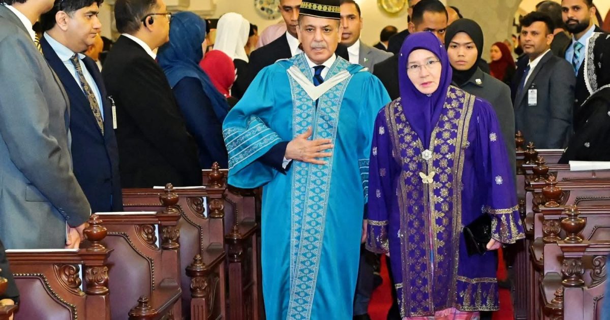 کوالالمپور: وزیر اعظم محمد شہباز شریف کو انٹرنیشنل اسلامک یونیورسٹی ملائیشیا (IIUM) سے لیڈرشپ اینڈ گورننس میں ڈاکٹریٹ کی اعزازی ڈگری دی گئی۔ یہ باوقار ڈگری ان کی قیادت اور حکمرانی کو تسلیم کرتے ہوئے، پہانگ کی ملکہ اور IIUM کی آئینی سربراہ، محترمہ تنکو عزیزہ امینہ میمونہ اسکندریہ نے عطا کی تھی۔
