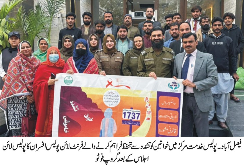فیصل آباد: پولیس خدمت مرکز فیصل آباد میں خواتین کو تشدد سے تحفظ فراہم کرنے والے فرنٹ لائن پولیس افسران کے ساتھ ایک اہم آگاہی اجلاس منعقد ہوا جس کا بنیادی مقصد متعلقہ اداروں کے درمیان رابطہ کاری کو مزید مؤثر بنانا اور خواتین کے حقوق و تحفظ سے متعلق قوانین کی آگاہی میں اضافہ کرنا تھا۔ اجلاس میں ڈسٹرکٹ ویمن پروٹیکشن آفیسر کنول شہزادی، ویمن پروٹیکشن آفیسر مسز صنم زہرہ، لاء آفیسر زاہد علی شاکر، انچارج تحفظ مرکز گلناز خالد، ایس ایچ او ویمن پولیس اسٹیشن مدیحہ ارشاد، انچارج خدمت مرکز سید منیب گیلانی سمیت دیگر افسران نے شرکت کی۔ کنول شہزادی نے شرکاء کو پنجاب پروٹیکشن آف ویمن اگینسٹ وائلنس ایکٹ 2016ء کے اہم نکات پر تفصیلی بریفنگ دی اور تشدد کا شکار خواتین کو فوری معاونت فراہم کرنے کے موجودہ طریقہ کار، پولیس خدمت مرکز کے کردار اور قانون کی اہم شقوں سے آگاہ کیا۔ اجلاس میں اس بات پر زور دیا گیا کہ فرنٹ لائن پولیس سٹاف کے باہمی تعاون اور مربوط کوششیں تشدد سے متاثرہ خواتین کو بروقت مدد، تحفظ اور انصاف دلانے میں مرکزی حیثیت رکھتی ہیں۔ شرکاء نے اس اقدام کو سراہتے ہوئے فیصل آباد میں خواتین کے تحفظ کے لیے مزید مؤثر اقدامات جاری رکھنے کے عزم کا اظہار کیا۔