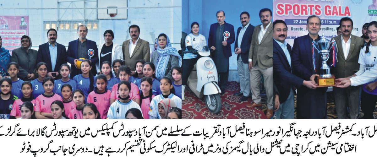 فیصل آباد میں گرلز یوتھ سپورٹس فیسٹیول، دو روزہ مقابلوں کا انعقاد, کمشنر فیصل آباد کی شرکت، والی بال، کراٹے اور ویٹ لفٹنگ کے مقابلے