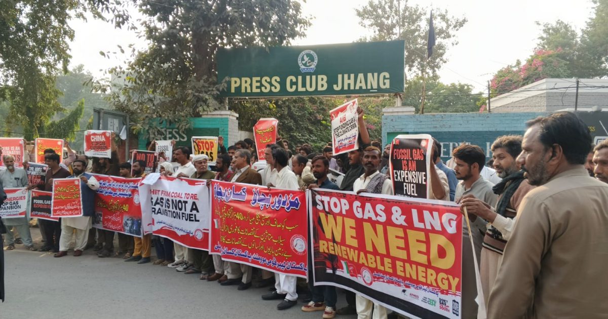 جھنگ: گیس کی توسیع کے خلاف کارروائی کے عالمی دن کی مہم کے ایک حصے کے طور پر، کارکنان، کسان، ٹریڈ یونین اور کمیونٹی رہنما بدھ کو جھنگ پریس کلب کے باہر جمع ہوئے اور پاکستان اور گلوبل ساؤتھ میں فوسل گیس انفراسٹرکچر کی توسیع کی مذمت کی۔ مظاہرے کا اہتمام پاکستان کسان رابطہ کمیٹی (PKRC) اور لیبر قومی موومنٹ (LQM) نے کیا تھا۔