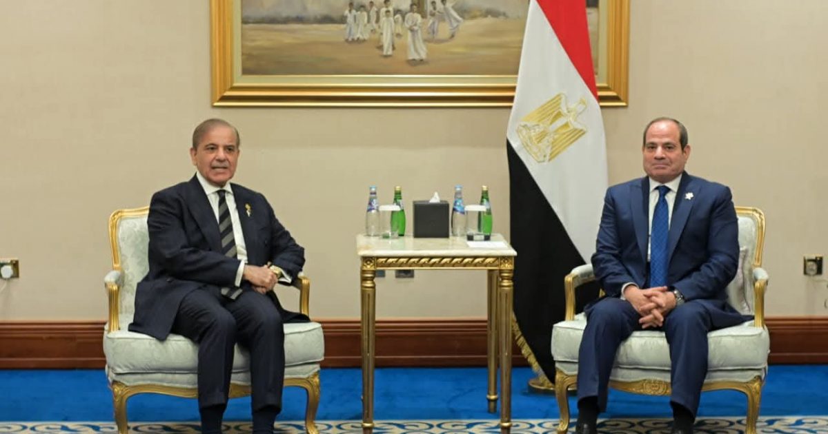 دوحہ: 15 ستمبر 2025 کو قطر میں ہنگامی عرب اسلامی سربراہی اجلاس کے موقع پر وزیراعظم محمد شہباز شریف نے مصری صدر عبدالفتاح السیسی سے ملاقات کی۔ رہنماؤں نے دوطرفہ تعلقات کو بڑھانے اور علاقائی امور پر تعاون پر تبادلہ خیال کیا۔