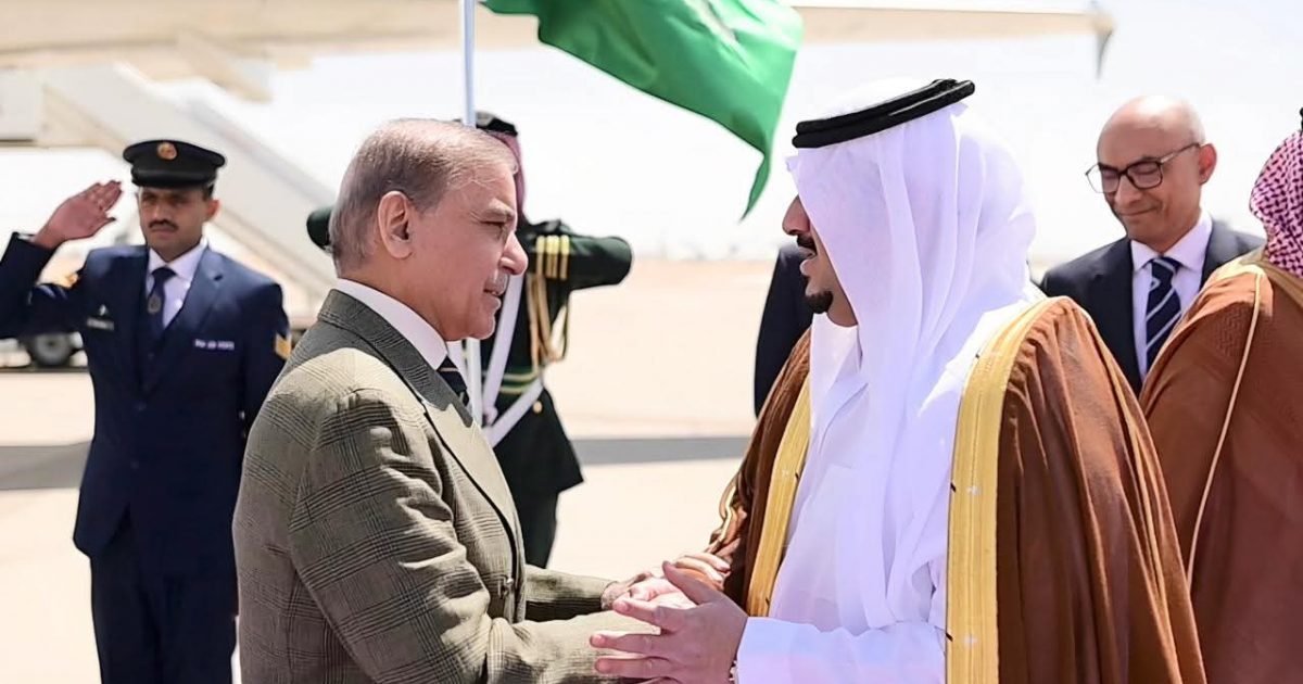 ریاض: ریاض کے ڈپٹی گورنر ایچ ای۔ محمد بن عبدالرحمن بن عبدالعزیز نے 17 ستمبر 2025 کو کنگ خالد ایئرپورٹ پر وزیر اعظم محمد شہباز شریف کا استقبال کیا۔ وزیر اعظم مملکت کے ساتھ دوطرفہ تعلقات کو مضبوط بنانے کے لیے سرکاری دورے پر سعودی عرب میں ہیں۔