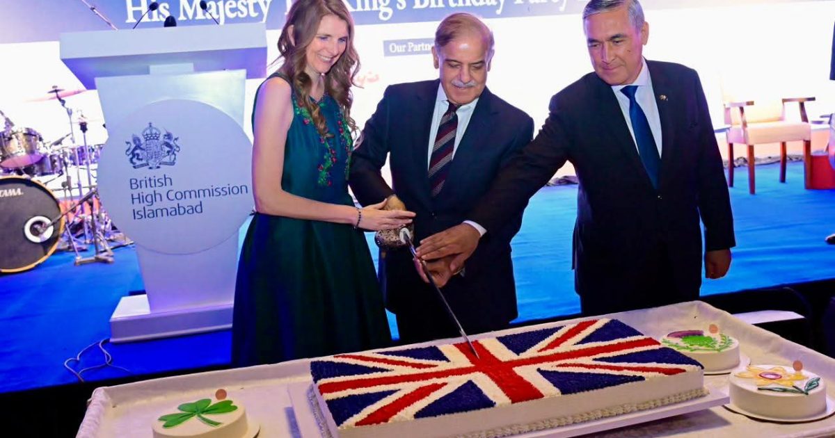 وزیراعظم محمد شہباز شریف نے برطانیہ کے بادشاہ چارلس سوم کی سالگرہ کی تقریبات میں شرکت کی اس موقع پر کیک کاٹا۔