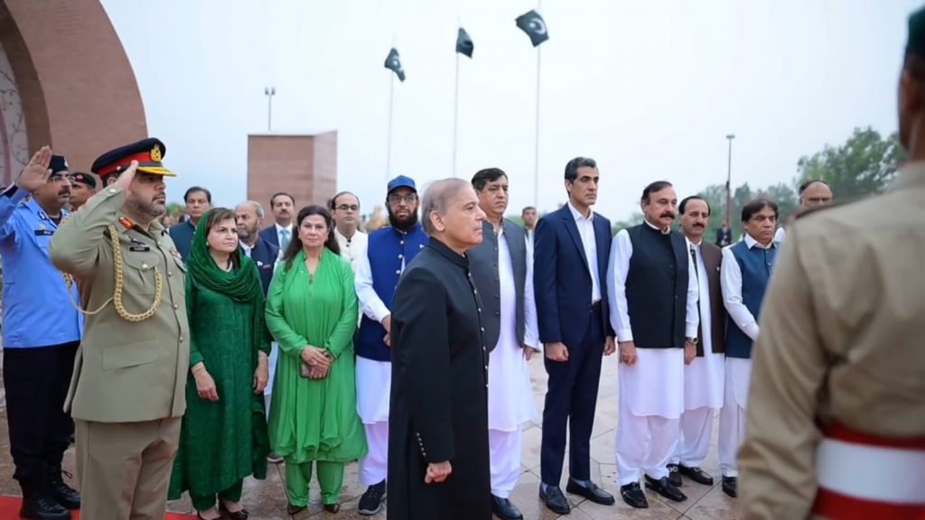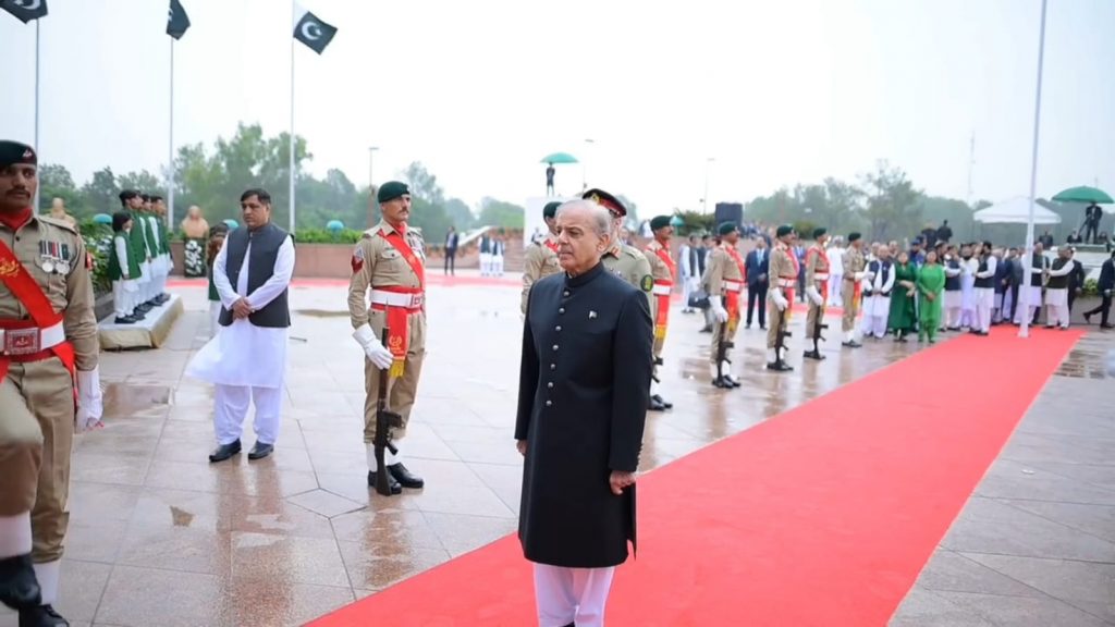 یوم آزادی کے موقع پر وزیراعظم محمد شہباز شریف نے یادگار پاکستان پر قومی پرچم لہرایا، یادگار شہداء پر پھول چڑھائے اور شہید ہونے والے ہیروز کے درجات کی بلندی کے لیے دعا کی۔