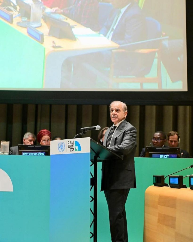 نیویارک: وزیر اعظم محمد شہباز شریف نے ایک خصوصی موسمیاتی تقریب میں موسمیاتی آفات کے حوالے سے پاکستان کے خطرے پر روشنی ڈالی۔ انہوں نے حالیہ سیلابوں کا حوالہ دیا جس نے 50 لاکھ سے زائد افراد کو متاثر کیا، ملک کے صاف توانائی کے اہداف کی تصدیق کی، اور موافقت اور پائیدار ترقی کی کوششوں میں مدد کے لیے قرضوں کی بجائے گرانٹ پر مبنی بین الاقوامی فنانسنگ پر زور دیا۔