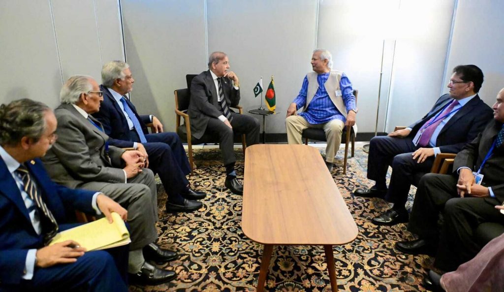 نیویارک، 25 ستمبر 2025: وزیراعظم محمد شہباز شریف نے اقوام متحدہ کی جنرل اسمبلی کے 80ویں اجلاس کے موقع پر بنگلہ دیش کے چیف ایڈوائزر پروفیسر محمد یونس سے دو طرفہ ملاقات کی۔ رہنماؤں نے دوطرفہ تعلقات کو مضبوط بنانے، علاقائی تعاون اور پائیدار ترقی کے مشترکہ اہداف کو آگے بڑھانے پر تبادلہ خیال کیا۔