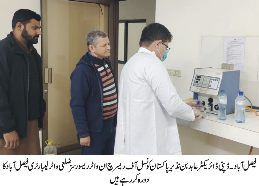 صنعتوں کو ویسٹ واٹر ٹیسٹنگ کی سہولیات فراہم کرنے کا اعلان، عوام و صنعتکار لیبارٹری سے براہ راست رجوع کر سکتے ہیں. پاکستان کونسل آف ریسرچ ان واٹر ریسورسز (پی سی آر ڈبلیو آر) لاہور کے ڈپٹی ڈائریکٹر عابد بن نذیر نے ضلعی واٹر لیبارٹری فیصل آباد کا دورہ کیا اور لیبارٹری کے آلات اور کارکردگی کا تفصیلی جائزہ لیا۔