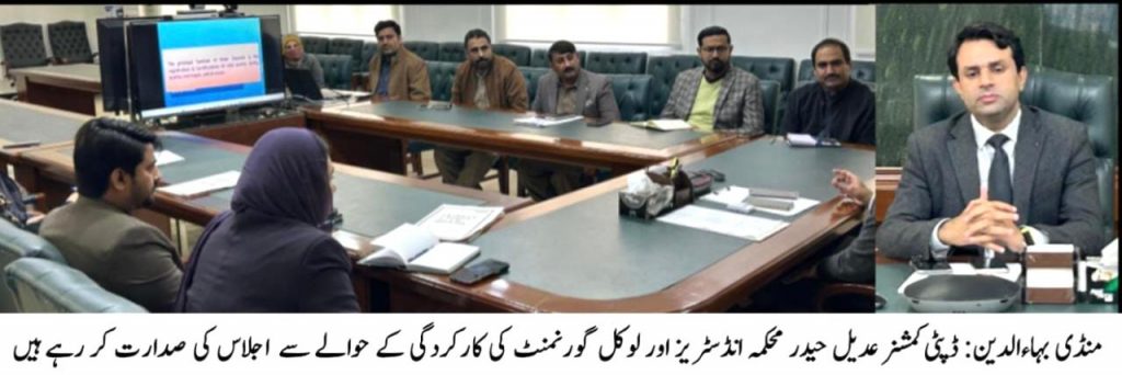 ڈپٹی کمشنر عدیل حیدر بریار کی زیر صدارت محکمہ انڈسٹریز اور لوکل گورنمنٹ کی کارکردگی کے حوالے سے اہم اجلاس منعقد ہوا۔ اجلاس میں ایڈیشنل ڈپٹی کمشنر ریونیو محمد جعفر چوہدری، ایڈیشنل ڈپٹی کمشنر جنرل راجہ حیدر عباس، چیف آفیسر میونسپل کمیٹی رضوان بشیر آغا ، ڈپٹی ڈائریکٹر لوکل گورنمنٹ عدنان ظفر رانجھا ،چیف آفیسر ضلع کونسل محمد فیاض وڑائچ ، ڈسٹرکٹ آفیسر انڈسٹریز رانا سعید اللہ خان اور دیگر نے شرکت کی ، اجلاس میں متعلقہ محکموں کی مجموعی کارکردگی، جاری اقدامات، عوام کو فراہم کی جانے والی سہولیات اور انتظامی امور کا تفصیلی جائزہ لیا گیا۔ درپیش مسائل پر بھی گفتگو کی گئی اور ان کے حل کے لیے مختلف پہلووں پر غور کیا گیا۔اجلاس کے دوران مستقبل کے لائحہ عمل پر تفصیلی تبادلہ خیال کیا گیا اور محکمہ کی کارکردگی کو مزید موثر، شفاف اور عوام دوست بنانے کے لیے عملی تجاویز پر اتفاق کیا گیا۔ ڈپٹی کمشنر عدیل حیدر نے ہدایت کی کہ پیش کی گئی تجاویز پر بروقت اور موثر عملدرآمد کو یقینی بنایا جائے تاکہ صنعتی شعبے کی بہتری اور عوامی سہولیات کی فراہمی کو مزید بہتر بنایا جا سکے۔