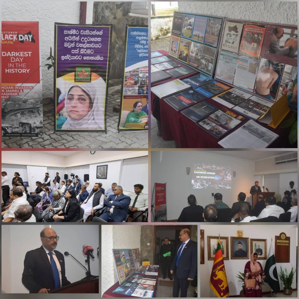 27 اکتوبر 2025۔ کولمبو میں اسلامی جمہوریہ پاکستان کے ہائی کمیشن نے آج ‘یوم سیاہ’ کی یاد میں ایک سیمینار اور تصویری نمائش کا انعقاد کیا، جس میں جموں و کشمیر کے لوگوں کے حق خودارادیت سے کئی دہائیوں تک انکار کی یاد منائی گئی۔