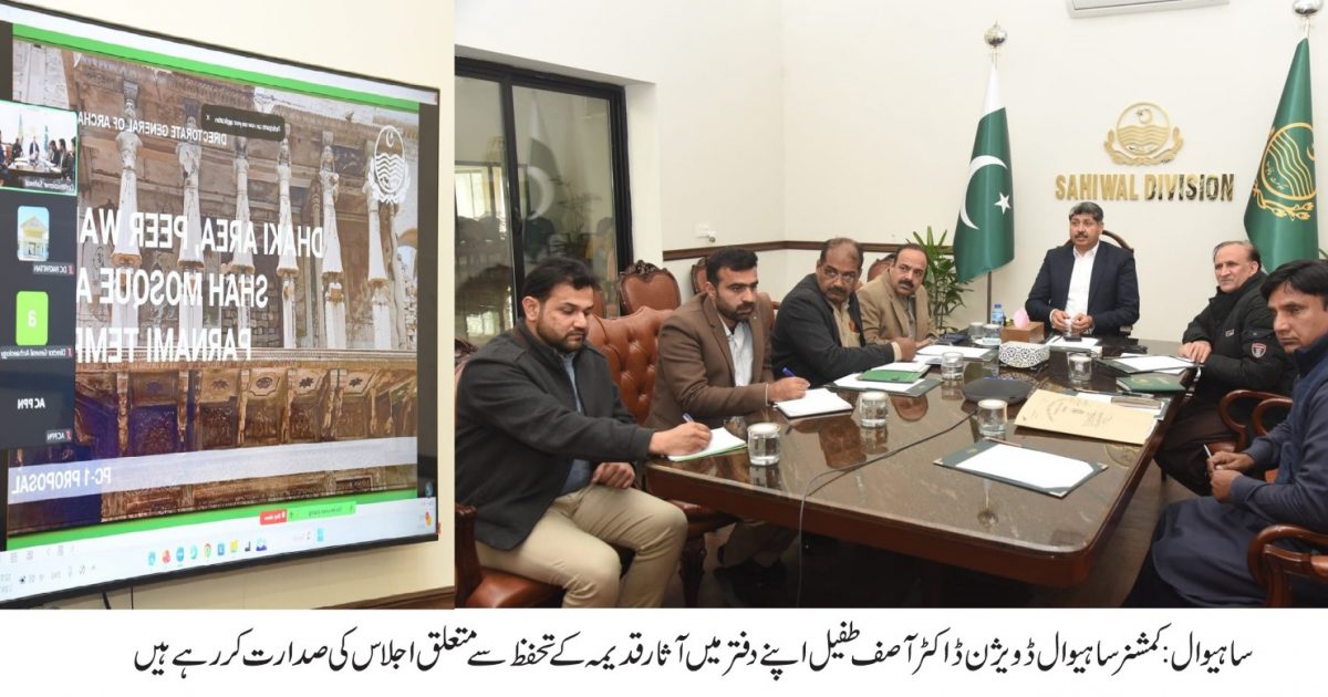 کمشنر ساہیوال ڈویژن ڈاکٹر آصف طفیل کی زیر صدارتکمیشنر آفس میں آثار قدیمہ کے تحفظ سے متعلق اجلاس منعقد ہوا