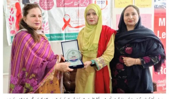 خواتین اور لڑکیوں کے خلاف تشدد کے خاتمے کے سلسلے میں ویمن پروٹیکشن آفیسر سمیرا شاہین نے پرنسپل گورنمنٹ گریجویٹ کالج برائے خواتین ساہیوال سمیرا نسیم سے ملاقات کی۔
