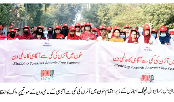 ساہیوال ٹیچنگ ہسپتال میں ورلڈ انیمیا ڈے کے موقع پر شعبہ گائنی کے زیرِ اہتمام آگاہی واک کا انعقاد کیا گیا۔