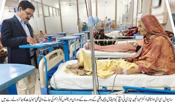 سی ای او ہیلتھ ڈاکٹر عبدالمجید نیازی نے تحصیل ہیڈ کوارٹر ہسپتال چیچہ وطنی کا دورہ کیا اور مریضوں کو وارڈز میں فراہم کی جانے والی طبی سہولیات کا جائزہ لیا۔