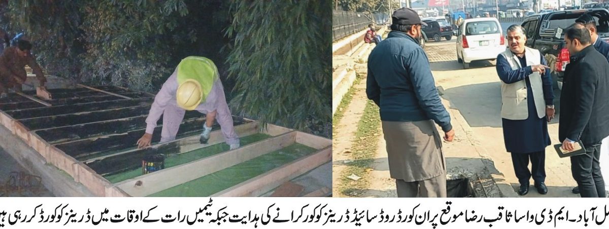 دریں اثناء مینیجنگ ڈائریکٹر واسا ثاقب رضا نے جڑانوالہ روڈ سمیت دیگر شاہرات کا ہنگامی دورہ کیا اور سائیڈ واکس ڈرینز کو کور کرنے کے عمل کا جائزہ لیا۔ انہوں نے متعلقہ ٹیموں کو کام میں تیزی لانے کی ہدایت کرتے ہوئے کہا کہ عوامی جانوں کا تحفظ اولین ترجیح ہے، اس پر کسی قسم کا سمجھوتہ نہیں کیا جائے گا۔