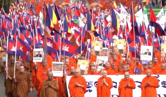بدھ راہبوں نے جنگ بندی اور فوجیوں کی رہائی پر زور دیتے ہوئے امن مارچ کا انعقاد کیا۔