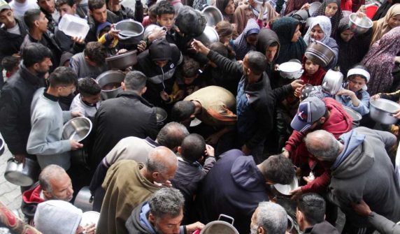 غزہ میں بھوک کے بحران کے درمیان فلسطینی امدادی ٹرکوں کا ہجوم