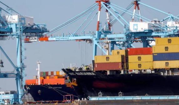 نیو جرسی میں پورٹ الزبتھ کا منظر جب مزید امریکی محصولات لاگو ہوتے ہیں۔