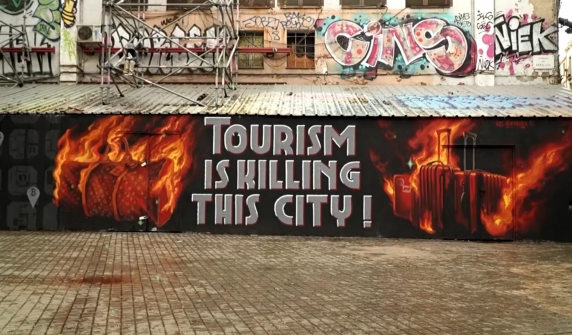 بارسلونا میں گرافٹی نے شہر پر سیاحت کے اثرات کے خلاف احتجاج کیا۔