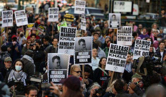 کولمبیا یونیورسٹی میں اسٹوڈنٹ ایکٹوسٹ محمود خلی کی حراست کے خلاف احتجاج شروع ہو گیا۔