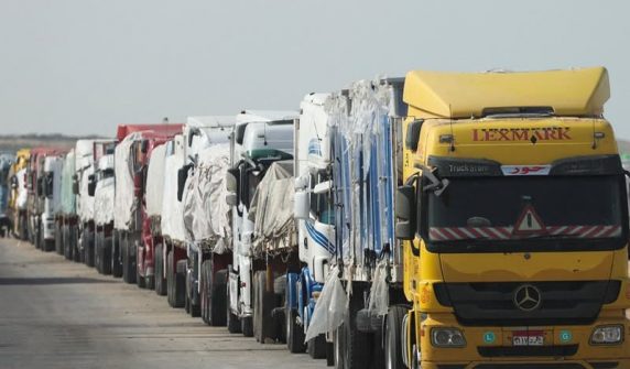 امدادی ٹرک جنگ بندی معاہدے کے تحت غزہ کی طرف بڑھ رہے ہیں۔