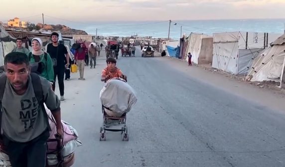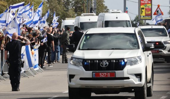 ریم بیس کے قریب سے اسرائیلی یرغمالیوں کو رہا کرنے والا قافلہ گزرتے ہی ہجوم کا ہجوم