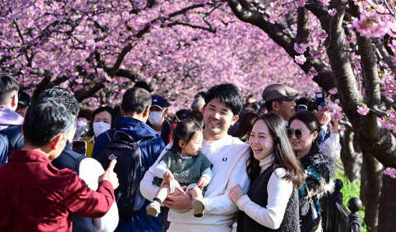جاپان کے دریائے کاوازو کے ساتھ چیری کے ابتدائی پھول پورے بلوم میں