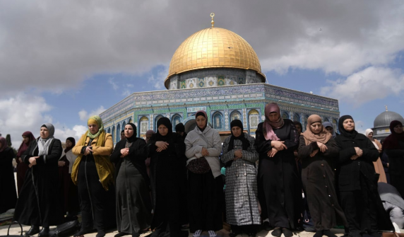 مسلمان نمازی رمضان کے دوران الاقصیٰ میں نماز جمعہ کے لیے جمع ہوتے ہیں۔