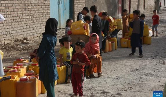 افغان بچے بڑھتے ہوئے بحران کے درمیان پانی لے رہے ہیں۔