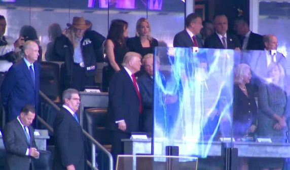 ٹرمپ نے یانکیز کے 9/11 گیم میں چیئرز اینڈ بوز کے ساتھ ملاقات کی۔