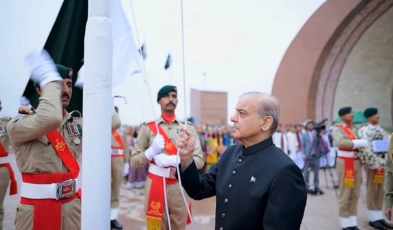وزیر اعظم شہباز شریف یوم آزادی پر یادگار پاکستان پر پرچم کشائی کر رہے ہیں۔