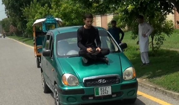 ایبٹ آباد کا آدمی سبحان موبائل ایپ کا استعمال کرتے ہوئے گاڑی چلا رہا ہے۔