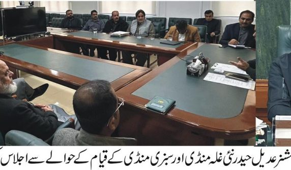 نئی سبزی و غلہ منڈی کے قیام پر ڈپٹی کمشنر عدیل حیدر کی زیر صدارت اجلاس، آڑھتیوں کے مسائل کے فوری حل کی یقین دہانی