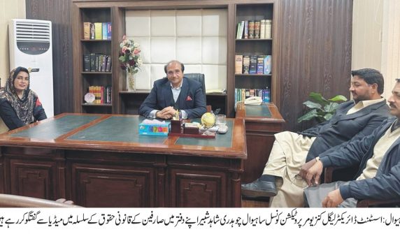 صارفین کے حقوق کاتحفظ ہماری اولین ترجیح ہے، ناجائز منافع خوری اور غیر معیاری مصنوعات کسی صورت برداشت نہیں کی جائیں گی۔ اسسٹنٹ ڈائریکٹر لیگل کنزیومر پروٹیکشن کونسل ساہیوال چوہدری شاہد شبیر