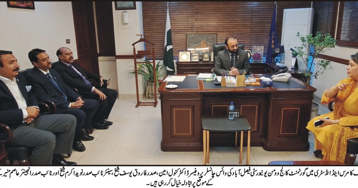 فیصل آباد۔ گورنمنٹ کالج ویمن یونیورسٹی فیصل آباد (GCWUF) کی وائس چانسلر پروفیسر ڈاکٹر کنول امین نے کہا کہ پوری دنیا میں پاکستان میں تیزی سے بدلتے ہوئے نصاب اور عمومی حالات کے باوجود ابھرتے ہوئے چیلنجز کا کامیابی سے مقابلہ کرنے کے لیے ان کی خوبیوں کو بروئے کار لانے کے لیے جامعہ کے گریجویٹس کی مکمل تیاری ناگزیر ہے۔ فیصل آباد چیمبر آف کامرس اینڈ انڈسٹری (FCCI) کے صدر جناب فاروق یوسف شیخ سے ملاقات کے دوران، انہوں نے صنعتی شعبے اور پاس آؤٹ یونیورسٹی کے فارغ التحصیل طلباء کے درمیان مطابقت پیدا کرنے کے علاوہ جدت، تخلیقی صلاحیتوں اور آؤٹ آف باکس سلوشنز کو آگے بڑھانے کے لیے انڈسٹری اور اکیڈمی کے تعلقات کو بڑھانے کے امور پر تبادلہ خیال کیا۔ سماجی ارتقاء پر تبصرہ کرتے ہوئے، انہوں نے کہا کہ مصنوعی ذہانت (AI) کے اضافے سے بہت سے پیشے متروک ہو چکے ہیں، لیکن ہمیں نوجوان نسل کو ان کی تخلیقی صلاحیتوں اور تنقیدی سوچ کو برقرار رکھنے کے ساتھ ساتھ AI سے فائدہ اٹھانے کی صلاحیتوں سے آراستہ کرنا چاہیے۔ انہوں نے ریمارکس دیے کہ جو کچھ ہم آج پڑھا رہے ہیں وہ اگلے چھ مہینوں میں غیر متعلقہ ہو سکتا ہے۔ لہذا، طلباء کو ہر نئے دور کے ابھرتے ہوئے چیلنجوں کا مؤثر طریقے سے سامنا کرنے کے لیے تیار رہنا چاہیے۔ وائس چانسلر نے صنعت اور تعلیمی روابط کو مضبوط بنانے پر زور دیتے ہوئے کہا کہ یونیورسٹی میں بزنس انکیوبیشن سینٹر قائم کیا گیا ہے، اور ORIC (آفس آف ریسرچ، انوویشن، اینڈ کمرشلائزیشن) کو بھی فعال کر دیا گیا ہے۔ انہوں نے ذکر کیا کہ ایف سی سی آئی کے صدر ORIC کمیٹی کے سابقہ رکن ہیں۔ تاہم، اس نے تجویز پیش کی کہ یونیورسٹی کے انٹرنز کو بھیجنے سے پہلے، صنعت کے نمائندوں کو طالب علموں کے لیے خصوصی اورینٹیشن سیشن کا انعقاد کرنا چاہیے تاکہ انھیں ان کی سہولیات اور ضروریات سے آگاہ کیا جا سکے۔ انہوں نے مزید کہا کہ “اس سے طلباء کو مستقبل کے لیے اپنی پیشہ ورانہ سمت کی نشاندہی کرنے میں مدد ملے گی۔” ڈاکٹر کنول امین نے مزید کہا کہ چھوٹے صنعتی یونٹ اکثر پیشہ ور محققین کی خدمات حاصل کرنے کے متحمل نہیں ہوتے لیکن وہ اپنے صنعتی مسائل پر تحقیق کے لیے یونیورسٹی کے انٹرنز کو استعمال کر سکتے ہیں۔ انہوں نے مقامی صنعتوں کی ضروریات کے مطابق تحقیق کی اہمیت پر زور دیا اور تجویز پیش کی کہ ایف سی سی آئی کے ذریعے یونیورسٹیوں اور صنعتوں کے درمیان ہم آہنگی کو مضبوط کیا جائے۔ انہوں نے کہا کہ “یہ نہ صرف صنعتوں کو ان کی ضروریات کے مطابق ہنر مند افرادی قوت فراہم کرے گا بلکہ انہیں اعلیٰ تعلیمی اداروں میں کی جانے والی جدید ترین تعلیمی تحقیق کے بارے میں بھی آگاہ کیا جائے گا”۔ اس موقع پر خطاب کرتے ہوئے ایف سی سی آئی کے صدر فاروق یوسف شیخ نے وائس چانسلر کے مثبت وژن کو سراہتے ہوئے کہا کہ بحیثیت قوم ہمیں تعلیم یافتہ طلباء کو اعلیٰ اخلاقی اقدار کے حامل اچھے انسانوں میں تبدیل کرنے کے لیے ذاتی مفادات سے بالاتر ہو کر آگے بڑھنا چاہیے۔ انہوں نے مزید کہا کہ وہ ایف سی سی آئی کی صنعت اکیڈمیا تعاون پر قائمہ کمیٹی کے سربراہ کے ساتھ طویل مدتی پالیسیوں کی تشکیل پر تبادلہ خیال کریں گے تاکہ ان کے دور میں متعارف کرائے گئے اقدامات کو مستقبل میں بھی برقرار رکھا جا سکے۔ جناب شیخ نے یہ بھی اعلان کیا کہ وہ FCCI اور GCWUF کے درمیان باہمی تعاون کو بڑھانے کے لیے فیصلوں کو حتمی شکل دینے کے لیے پروفیسر ڈاکٹر کنول امین کے ساتھ ایک اور میٹنگ کریں گے۔ بعد ازاں صدر فاروق یوسف شیخ نے وائس چانسلر پروفیسر ڈاکٹر کنول امین کو ایف سی سی آئی کی اعزازی شیلڈ اور سووینئر پیش کئے۔ سینئر نائب صدر نوید اکرم شیخ، نائب صدر انجینئر اس موقع پر عاصم منیر، عبداللہ قادری، محمد ہارون وحید بھی موجود تھے۔